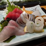 伊勢藤 いせずし - お刺身盛合せ(マグロ、カンパチ、コハダ、青柳、イカ、ヒラメ、唐墨)